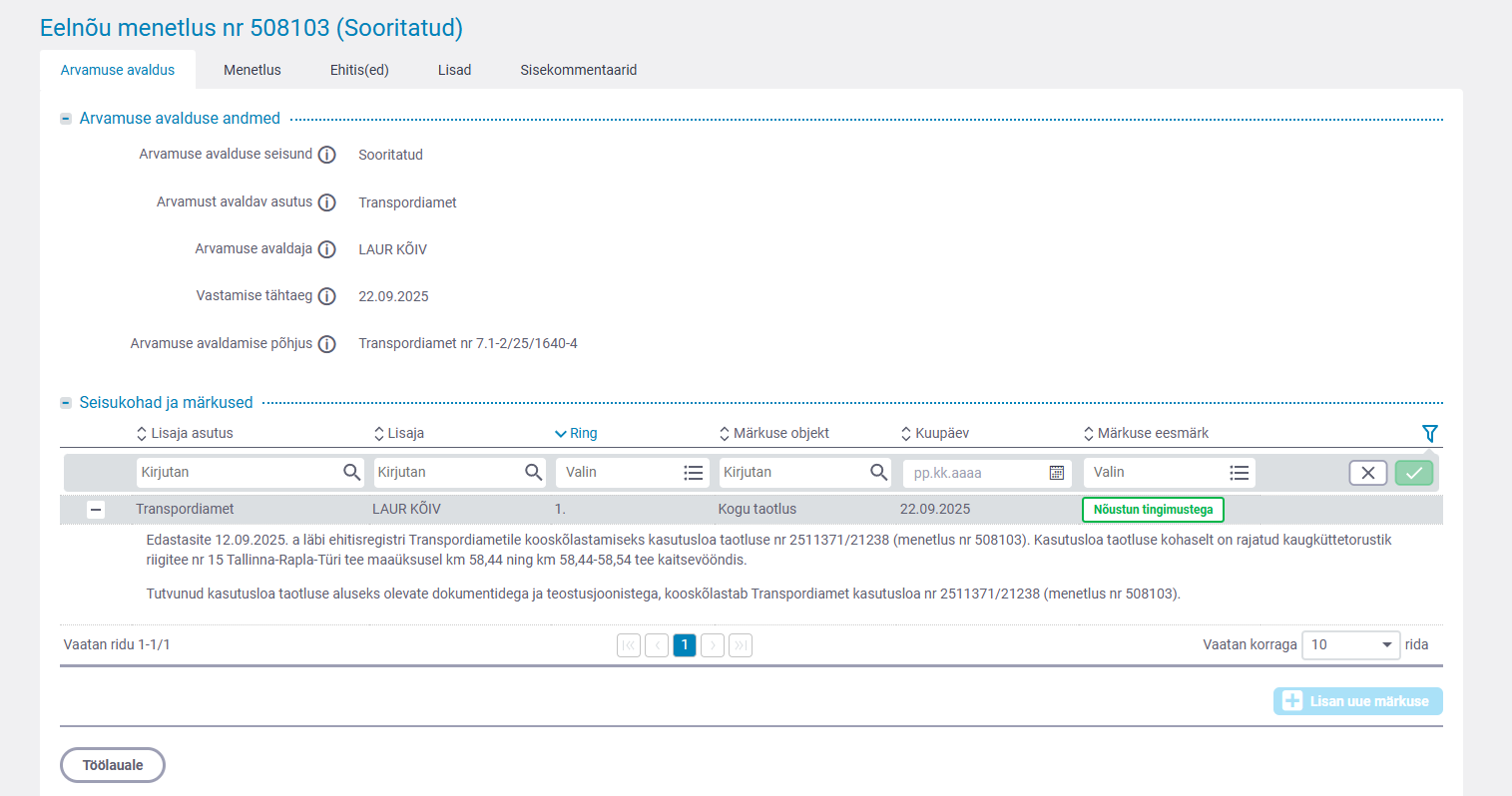 Vastutaja: | Laur Kõiv (Users, Teehoiuteenistus, Planeerimise osakond, Tehnovõrkude üksus) |